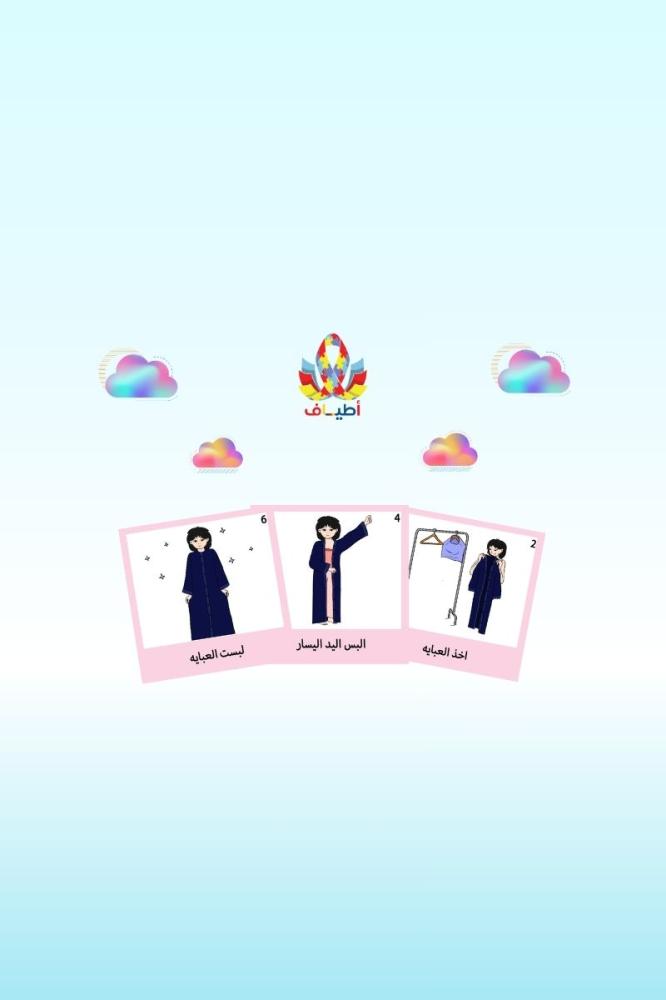 🖤 بطاقات تعليم مهارة لبس العباية للفتيات من أطياف 🖤